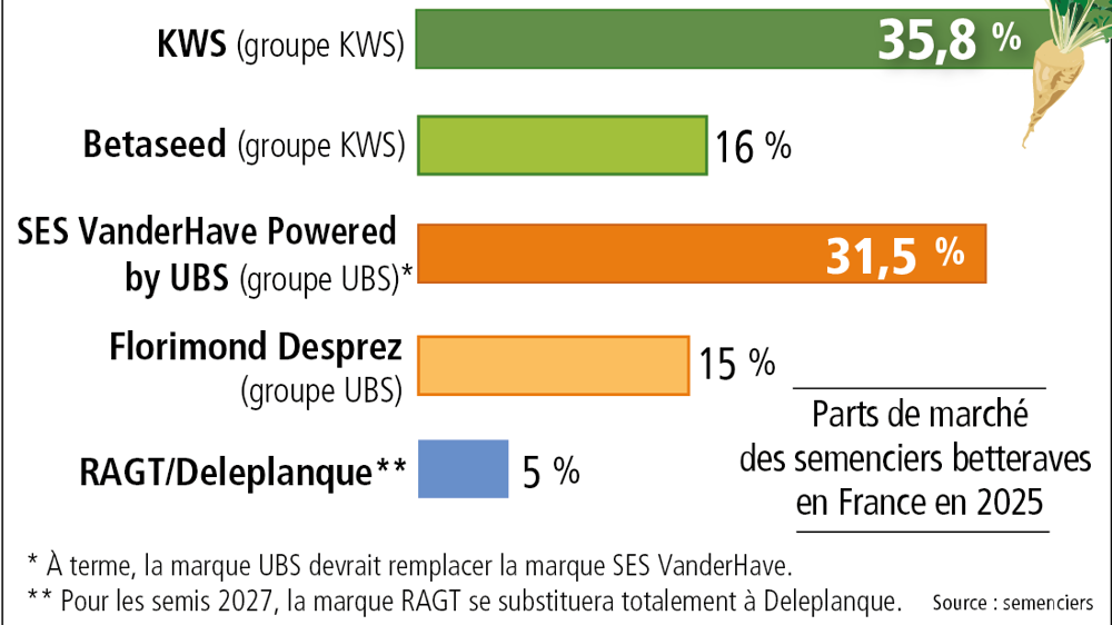 Avec environ 400 000 ha en 2025, les surfaces ont reculé de 3 à 4 % par rapport à 2024. Le nombre d’unités vendues baisse, lui, à 480 000 doses contre 492 000 l’année précédente. La part des variétés tolérantes à la rhizomanie atteint 67,8 % tandis que 31 % sont tolérantes aux nématodes et 1,2 % au rhizoctone brun. La cercosporiose a été moins présente en 2025, mais elle reste un axe fort de sélection, « avec le développement de variétés tolérantes sur tous les segments », indique Faustine Duyck (Florimond Desprez).